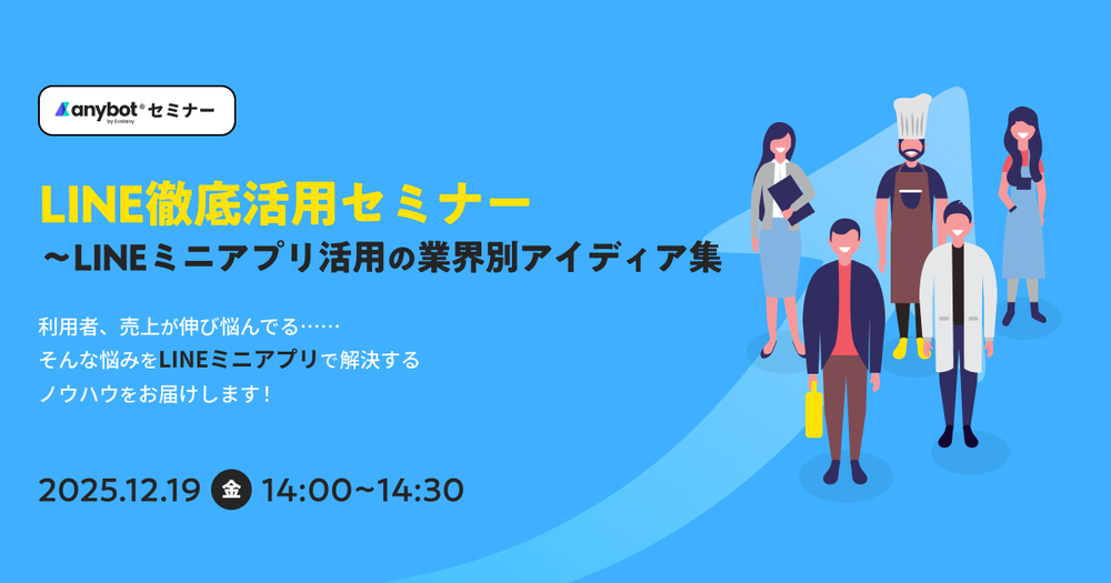 「anybot」は導入実績17,000社以上。LINE上での自動接客を実現するミニアプリ・チャットボット開発ツール。あらゆる機能をノーコードで構築でき、低コストかつ短納期での実装が可能です。LINEやメッセンジャー、メールなど既存のプラットフォームに多彩な機能を追加し、お客さまがより便利にサービスを利用できる環境を提供します。 公式ページ https://anybot.me?utm_sou...